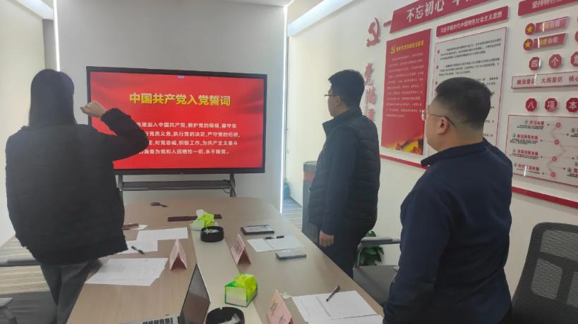 大会最后,全体党员在高振国同志带领下重温入党誓词。